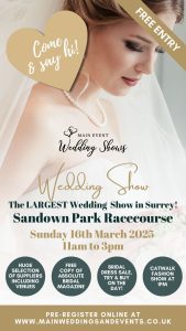 We will be exhibiting at the Sandown Park Racecourse Wedding Fayre on Sunday 16th March. 11:00 – 15:00.
